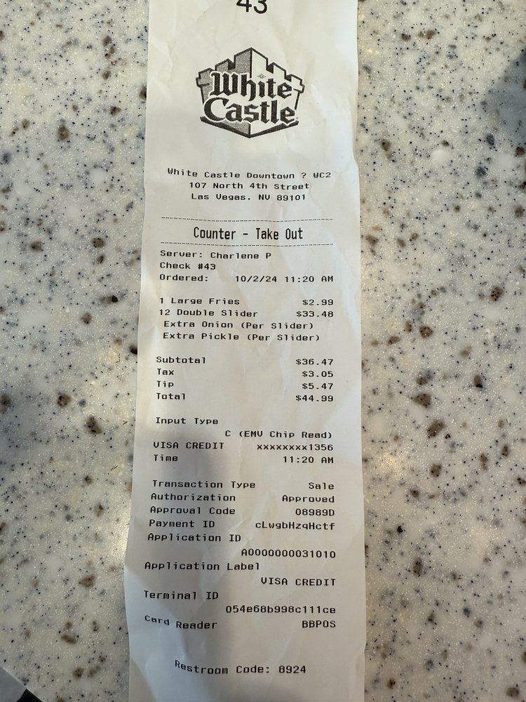 White Castle, a casual yet classy restaurant in Las Vegas, offers a wide range of breakfast options, including Breakfast Combos and Sacks filled with delicious sliders. The breakfast menu features Egg & Bacon, Egg & Cheese, and Egg & Sausage sliders, along with combo options for a complete meal. Customers rave about the savory sliders, with Michael C. noting the slow service but love for the food. Ashley R. appreciated the speedy workers and unique experience, while Erik G. enjoyed the sliders as a late-night snack. Joy P. found the sliders to be fulfilling and fresh off the grill. With options for groups, kids, and outdoor seating, White Castle provides a satisfying dining experience for all.